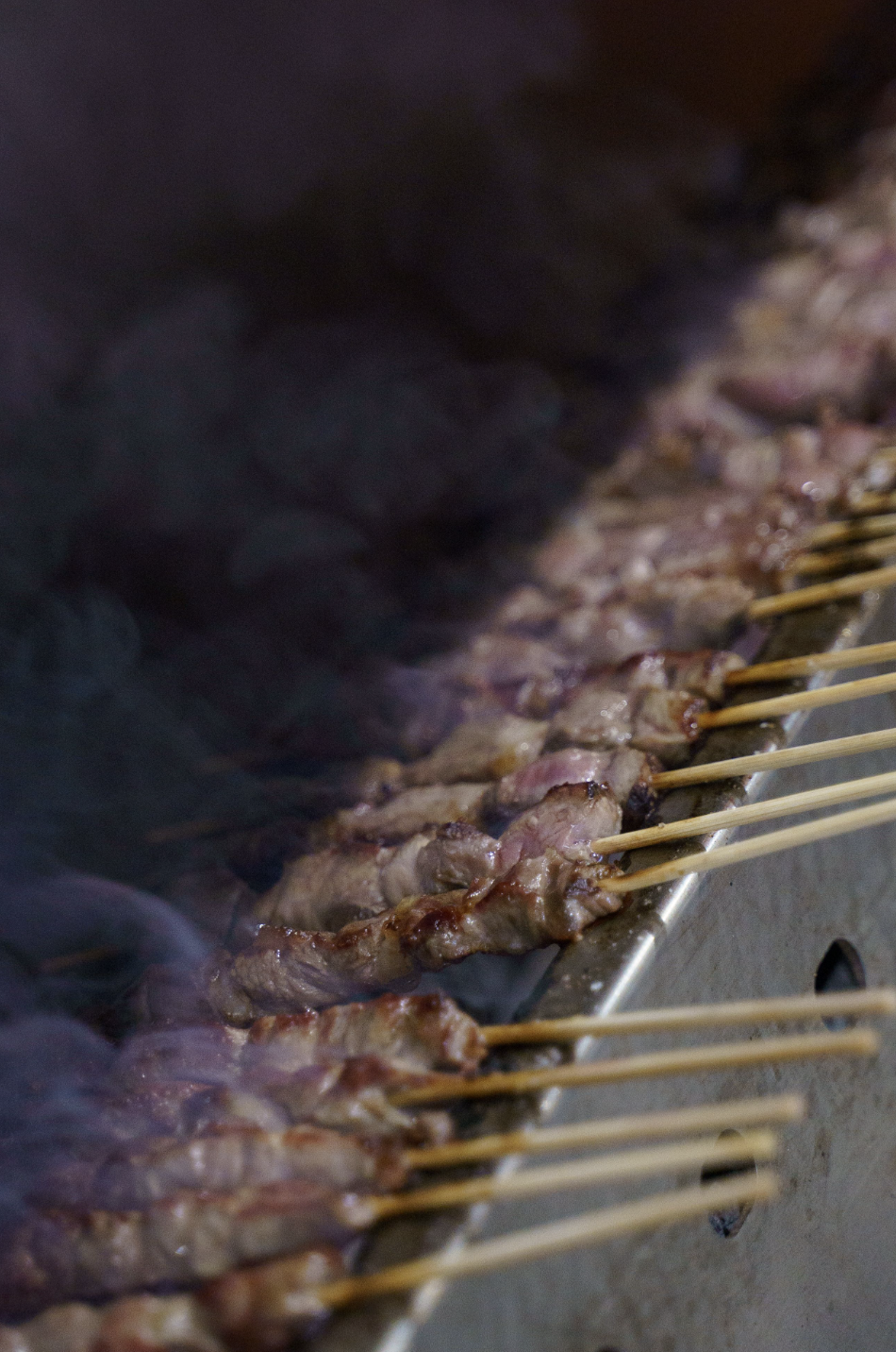2 arrosticini, 1 pallotta cacio e ova and bruschettina with Cerasuolo glass