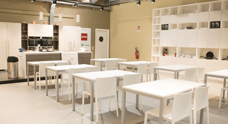 Spazi versatili e attrezzati, adatti a ospitare sia piccoli meeting e riunioni sia degustazioni, corsi di cucina e showcooking.