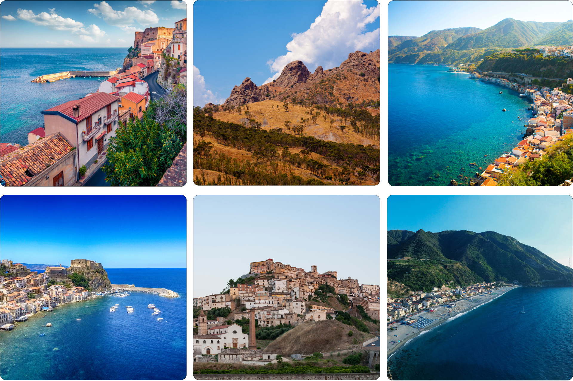 Con circa 1,855,354 abitanti e suddivisa in cinque province, la Calabria offre un territorio geograficamente variegato, dai rilievi montuosi dell'Aspromonte e della Sila alle lunghe coste bagnate dai mari Ionio e Tirreno. La regione è caratterizzata da una natura incontaminata e paesaggi mozzafiato, che fanno da cornice a una cultura ricca e profondamente radicata.