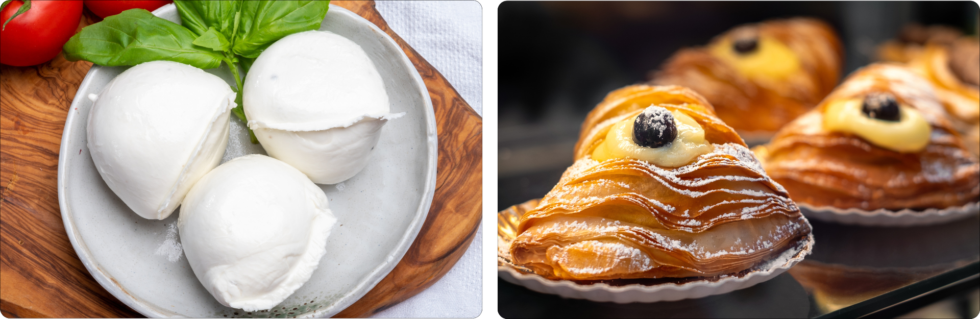 La Campania vanta un patrimonio enogastronomico di inestimabile valore, caratterizzato da una varietà di prodotti che sono il risultato di una felice combinazione di clima mite e terreno fertile. Già in epoca greca e romana, la regione si distingueva per la produzione di olio pregiato e vini eccellenti, tra cui la famosa Colatura di Alici di Cetara. La cucina campana, arricchita nel tempo dall'influenza delle dominazioni straniere, include piatti iconici come la pizza napoletana, il gateau di patate e la mozzarella di bufala, che rappresentano la perfetta sintesi tra tradizione e innovazione culinaria.