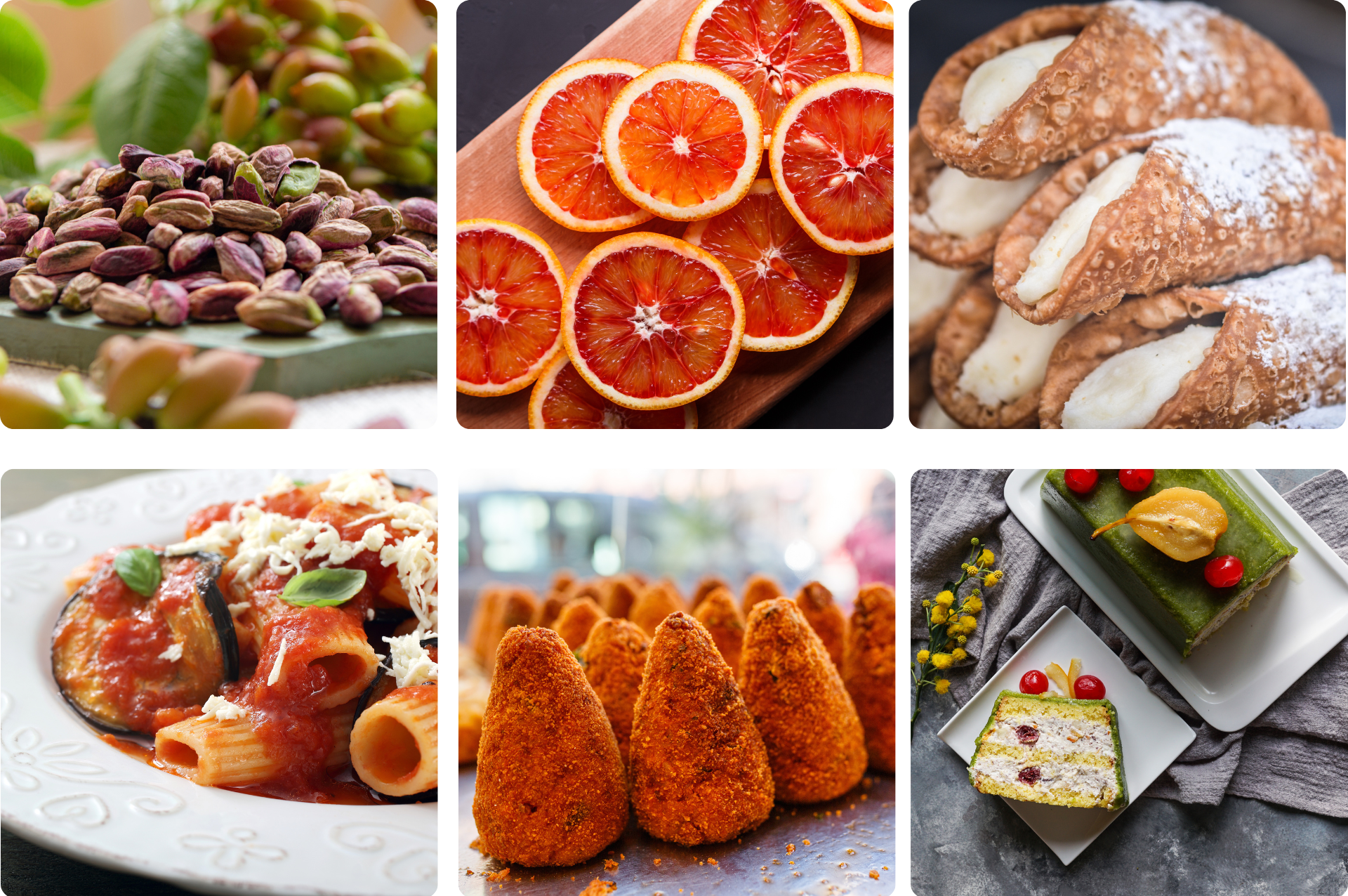 La cucina siciliana è un vero e proprio viaggio sensoriale che si nutre delle numerose influenze culturali subite dall'isola. Piatti come la pasta alla Norma, il cous cous di Trapani e dolci iconici come i cannoli e la cassata sono solo l'inizio di un lungo elenco di delizie. I prodotti di eccellenza come il Nero d'Avola, il Marsala, l'arancia rossa di Sicilia e il pistacchio di Bronte parlano della ricchezza del territorio e della sua tradizione agricola, rendendo la gastronomia siciliana rinomata a livello mondiale.
