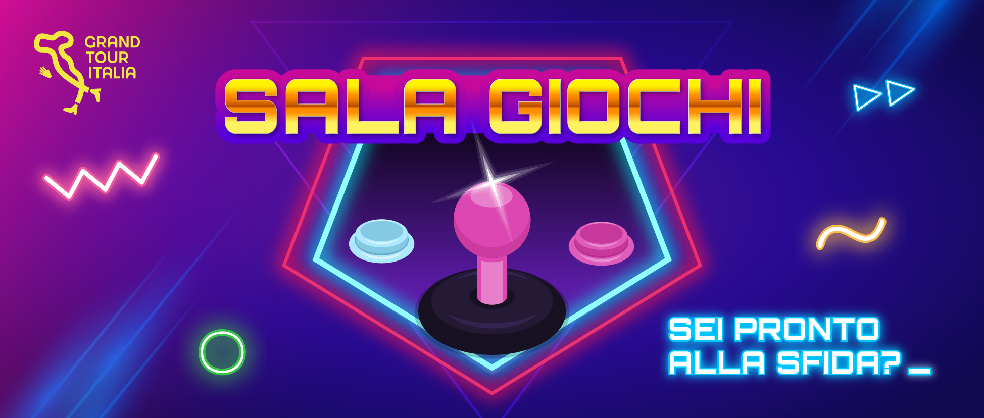 La Sala Giochi di Grand Tour Italia è un’area fatta di luci colorate e suoni elettronici, uno spazio in cui puoi tornare un po’ bambino, sfidare i tuoi amici o semplicemente lasciarti andare e divertirti. Qui trovi dai classici flipper vintage, che ancora oggi conservano un fascino intramontabile, ai videogiochi più iconici di sempre per essere subito catapultato negli anni ‘‘90, quando bastava avere in mano un joystick per sentirsi imbattibili.