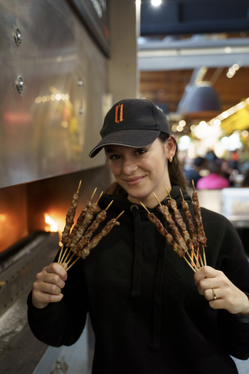 2 arrosticini, 1 pallotta cacio e ova e bruschettina con calice Cerasuolo